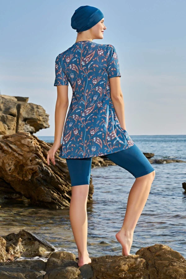 Speciellt designad för den kurviga kvinnan, erbjuder denna innovativa burkini rörelsefrihet och en chic look vid vattnet – utan att kompromissa med dina värderingar. Den petrolblåa nyansen utstrålar modern sofistikation och gör burkinin till ett iögonfallande men tidlöst alternativ för stranden, poolen eller andra vattenaktiviteter.