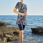 Upptäck vår eleganta blommiga burkini med hijab – tillverkad av högflexibelt och snabbtorkande tyg som ger både komfort och funktionalitet vid användning.