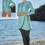 Grågrön burkini med raglanärm – designad för maximal komfort, täckning och rörelsefrihet under dina simsessioner.