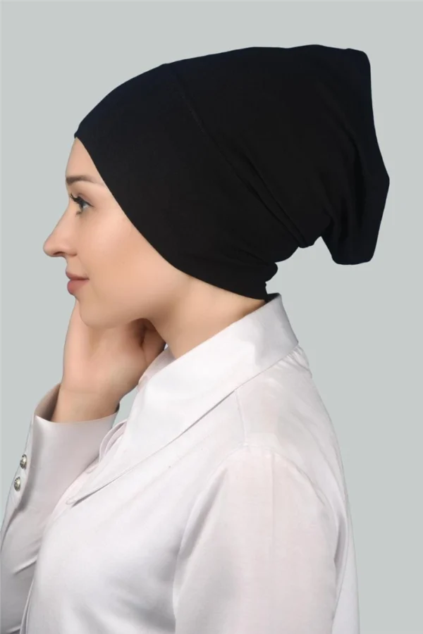 Ge din hijab-stil en trygg och stilfull bas med vår svarta bomullsunderslöja – en oumbärlig del av varje hijab-bärares kollektion.