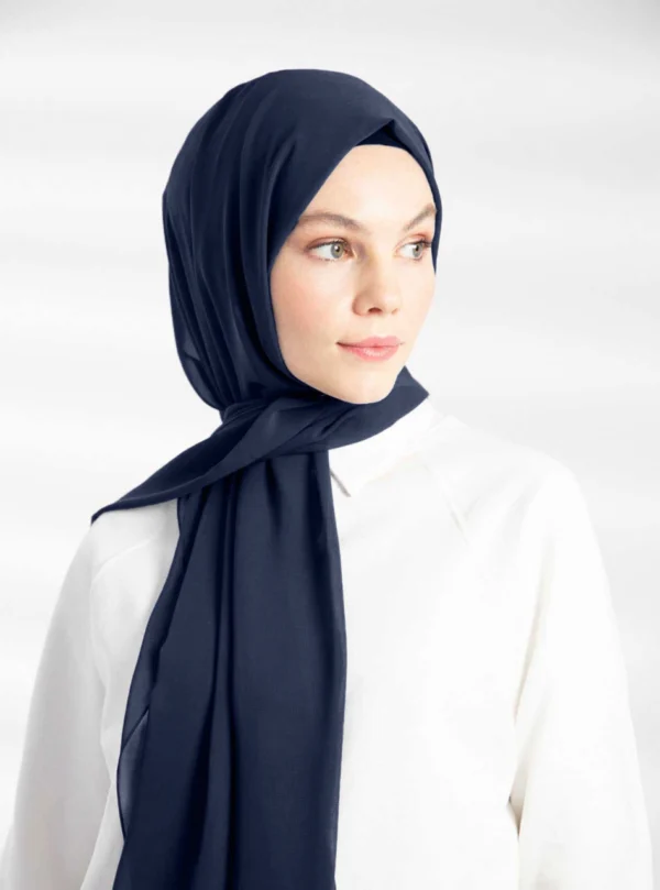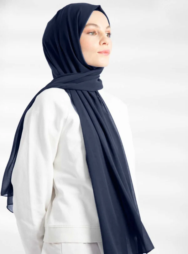 Crepe Chiffong Hijab Marinblå – Färgkod 23 är mer än bara en accessoar – den är en del av din personliga stil. Den representerar både enkelhet och lyx, vilket gör den till ett oumbärligt plagg i garderoben för kvinnor som vill kombinera tradition och modernitet.