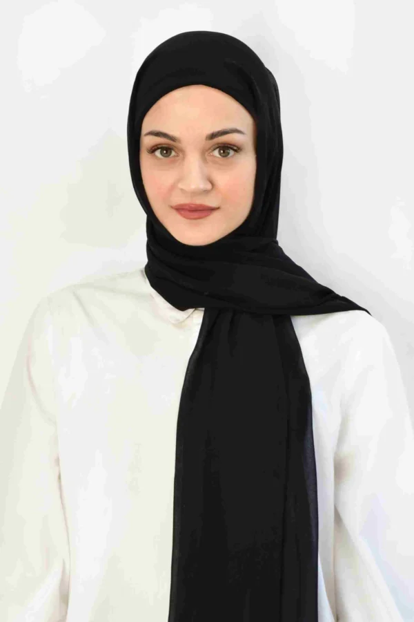 Svart är en tidlös och mångsidig färg som passar alla hudtoner och outfits. Den ger en sofistikerad, stilren och elegant look som fungerar perfekt till både vardag och mer formella tillfällen. Den neutrala färgen gör hijaben lätt att kombinera med andra plagg och accessoarer, vilket gör den till ett oumbärligt basplagg i garderoben.
