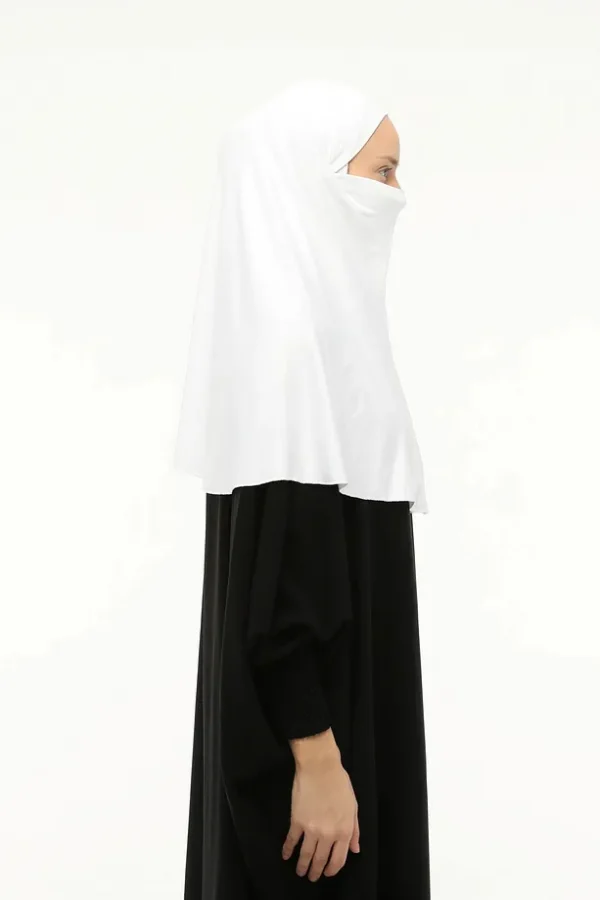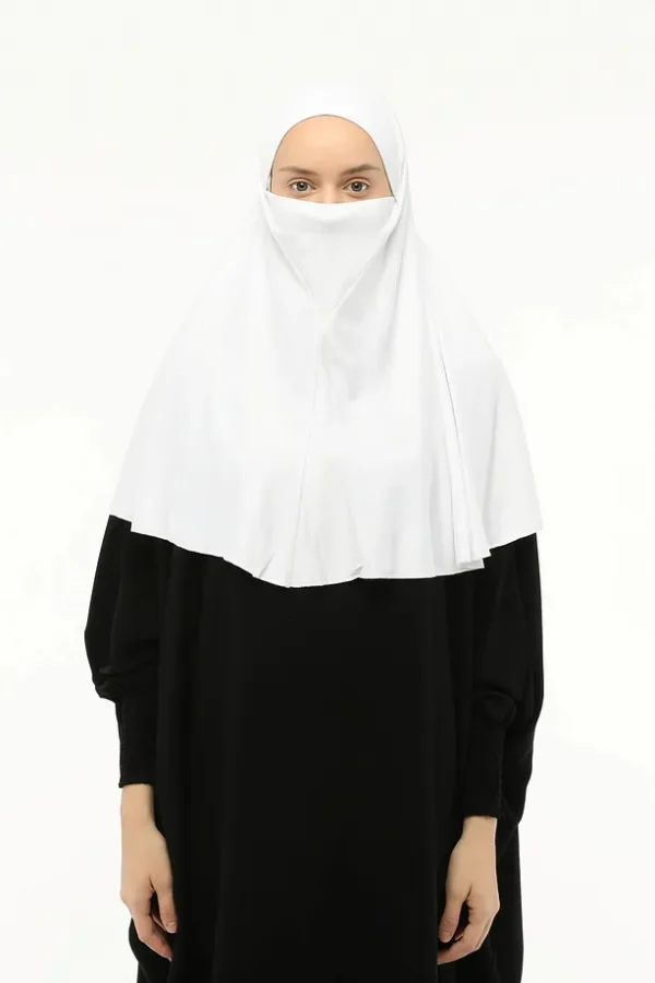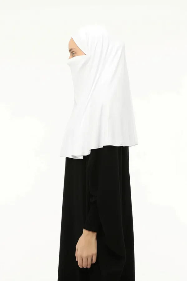 Denna vita hijab i ett stycke är skapad för dig som vill ha både enkelhet och stil i vardagen. Tillverkad i mjuk Sandi Lycra med extra elastisk baksida, ger den en perfekt passform som sitter bekvämt hela dagen utan att kännas stram.