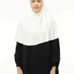 Denna vita hijab i ett stycke är skapad för dig som vill ha både enkelhet och stil i vardagen. Tillverkad i mjuk Sandi Lycra med extra elastisk baksida, ger den en perfekt passform som sitter bekvämt hela dagen utan att kännas stram.