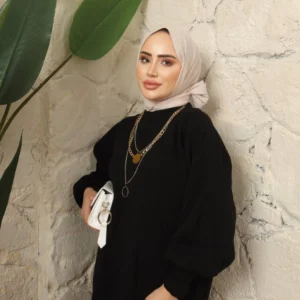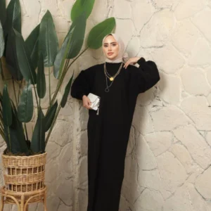 Den blygsamma och tidlösa utformningen gör denna jilbab-klänning till ett självklart val för kvinnor som bär hijab. Den erbjuder full täckning på ett elegant sätt och framhäver samtidigt en feminin siluett tack vare sitt klassiska snitt.