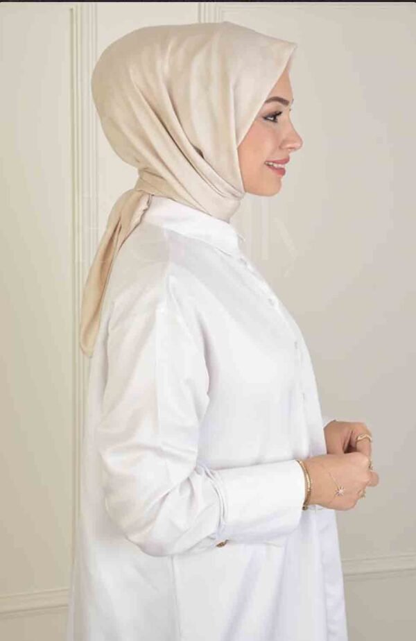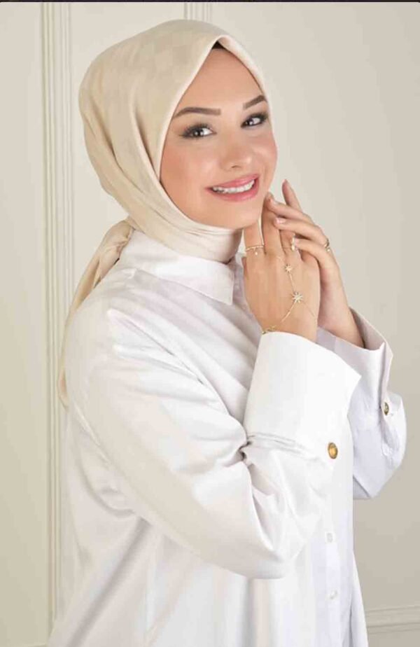 Den ljusbeige färgen gör hijaben perfekt för alla typer av vardagliga situationer – från arbete och studier till möten och sociala tillställningar. Den kvadratiska formen ger dig möjlighet att experimentera med olika draperingar och knytningar, vilket låter dig skapa en personlig look som speglar din stil och personlighet.