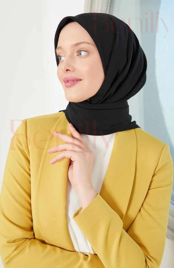 Medina silke är känt för sin silkeslena textur, lätthet och hållbarhet. Materialet faller naturligt, behåller sin form hela dagen och ger en sofistikerad touch oavsett tillfälle. Den klassiska svarta färgen gör hijaben enkel att matcha med allt från vardagskläder till festplagg, vilket gör den till en oumbärlig del av varje modest fashion-garderob.
