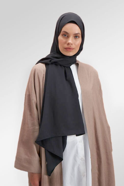 Medina Silk hijaben i svart är den ultimata klassikern som hör hemma i varje hijabbärande kvinnas garderob. Tillverkad i det populära Medina Silk-materialet, kombinerar den mjukhet, stil och praktisk användning i ett och samma plagg. Tyget har en vacker, diskret glans som ger en sofistikerad känsla utan att vara för iögonfallande. Det är täckande, lätt att forma, och sitter bekvämt hela dagen utan att glida.