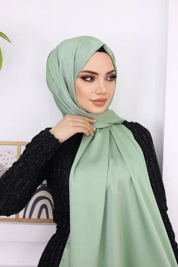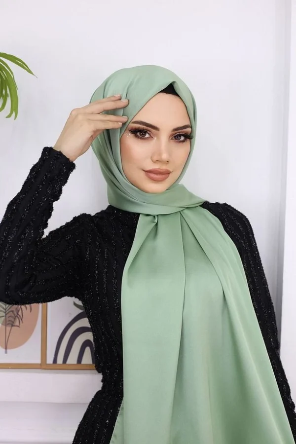 Förvandla din stil med vår exklusiva hijab i metallisk satin i en vacker grön nyans. Denna hijab är perfekt för den kvinna som vill kombinera elegans med komfort. Satinens glansiga yta fångar ljuset på ett sofistikerat sätt, vilket ger en subtil men märkbar lyxkänsla till din outfit. Oavsett om du ska på arbete, vardagliga ärenden eller festliga tillfällen, är denna hijab ett mångsidigt och stilfullt val.