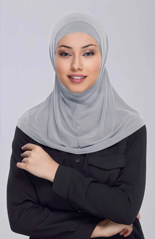 Oavsett om du är nybörjare inom hijab eller föredrar snabba och smidiga alternativ, är denna tvådelade hijab ett smart val. Med sin praktiska utformning, mjuka textur och vackra silvernyans blir den snabbt en favorit i din hijabkollektion.
