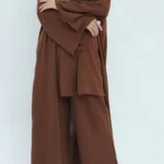 De matchande byxorna i Delat Kimono Set – Beige kompletterar kimonotoppen perfekt. De har en bekväm passform, ofta med resår i midjan, vilket säkerställer maximal komfort utan att kompromissa med stilen. Den vida benkonstruktionen bidrar till setets avslappnade men eleganta estetik, samtidigt som den ger full rörelsefrihet. Tillsammans skapar topp och byxor en sammanhängande och chic ensemble som kan bäras som ett komplett set för en koordinerad look, eller delas upp och stylas separat för att skapa en mängd olika outfits.