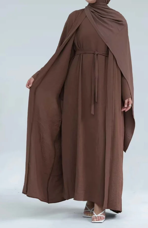 Ett elegant och stilrent val för den moderna kvinnan är vårt 2-delade Abaya set, bestående av en klänning och en Abaya i en sofistikerad brun färg. Detta set kombinerar traditionell modesty med modern stil, vilket gör det till ett perfekt val för både vardagsbruk och speciella tillfällen.