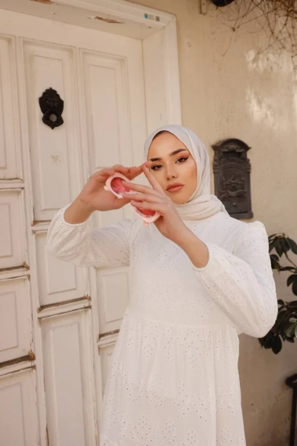 Långärmad Klänning med Broderie Anglaise i Vitt är själva sinnebilden av svensk sommar – skapad för att fira dina mest minnesvärda ögonblick. Den krispigt vita färgen och de romantiska detaljerna gör den till det självklara valet för studenten, midsommarfirandet eller soliga dagar fyllda med glädje.