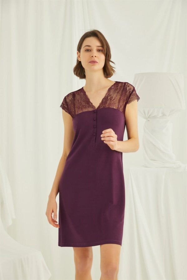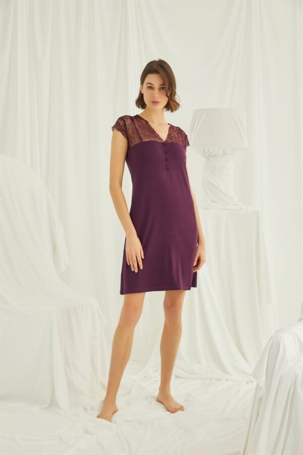Benilly Nattlinne – Rödfärgad är ett elegant och bekvämt nattplagg som kombinerar mjuk komfort med romantiska detaljer – perfekt för en god natts sömn.
