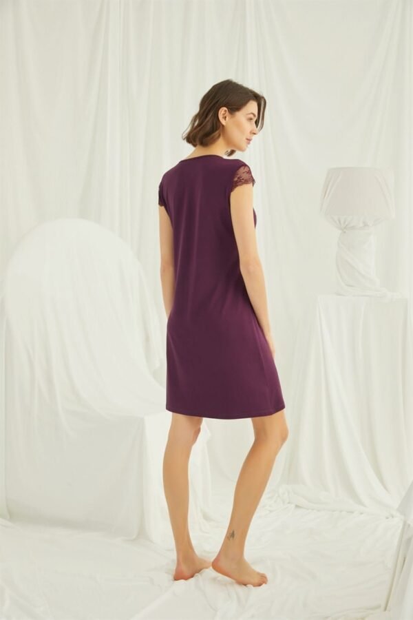 Detta nattlinne är tillverkat av stickat tyg med högt innehåll av bomull och viskos, vilket gör det mjukt, följsamt och andningsbart. Materialet hjälper till att underlätta övergången till sömn och ger en behaglig känsla mot huden.