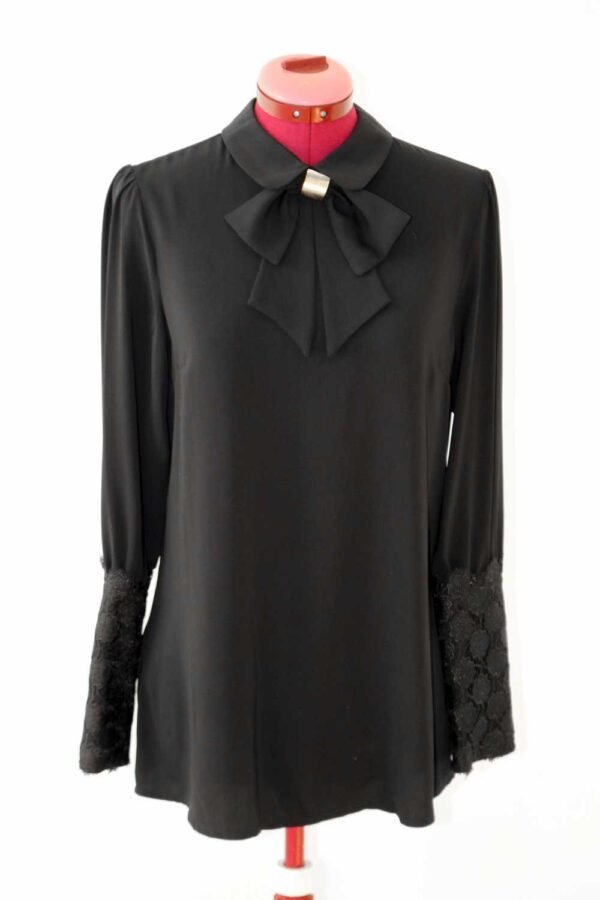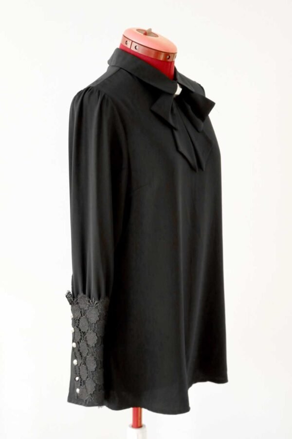Hållbar Knytblus Med Spetskant Och Dragkedja – Svart
