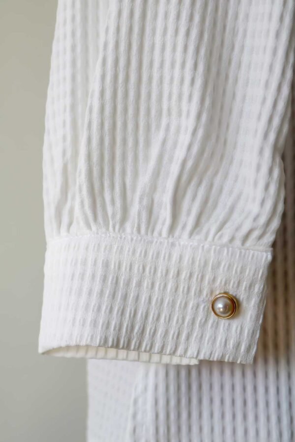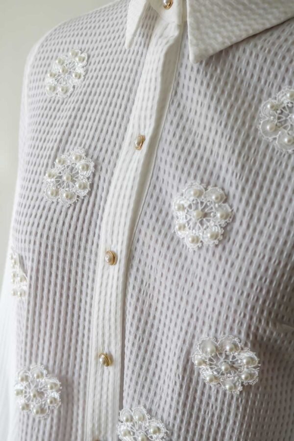 En klassisk skjorta tillverkad av lätt vävd bäckebölja, broderad med åtta rosor på framsidan. Rosorna pryds med pärlor. Skjortan är 75 cm lång.