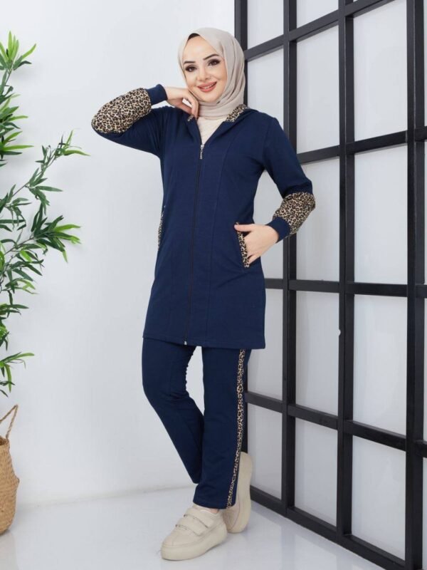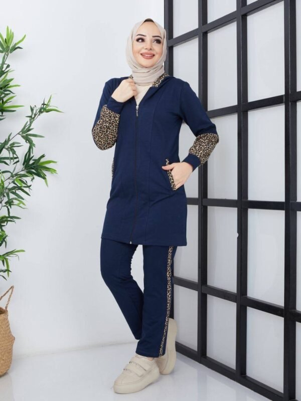 Joggingdräkt I Leopardmönster – Marinblå