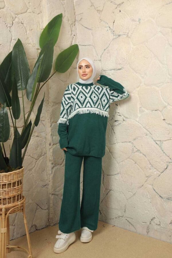 Jacquardstickad Tvådelade Set – Mörkgrön