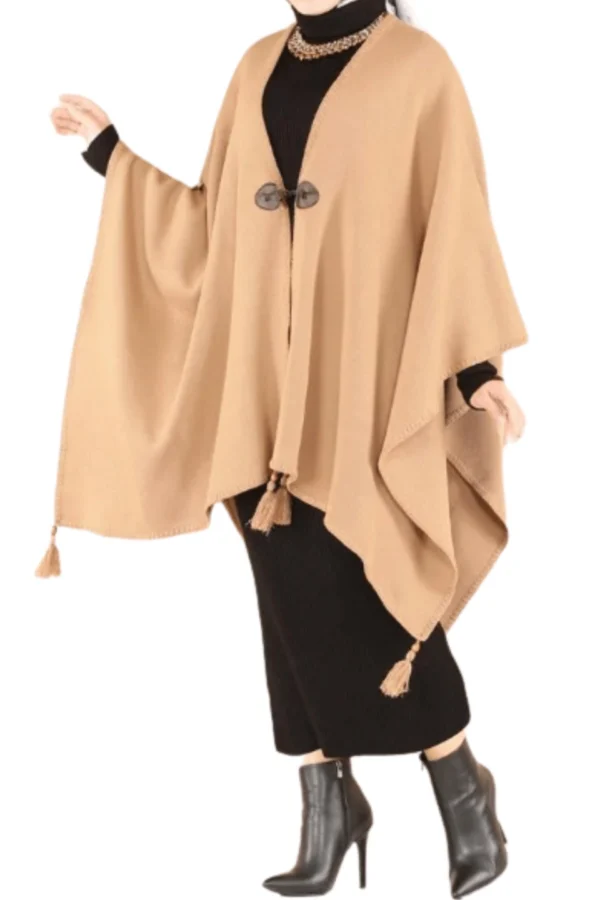 Upptäck vår eleganta beige poncho, ett mångsidigt plagg som kombinerar komfort, stil och tidlös modest design. Den är perfekt för Ramadan, Eid, bönestunder, familjesammankomster och festliga tillfällen, men fungerar lika bra för vardag och avslappnade utflykter. Ponchon är skapad för kvinnor som vill ha både komfort och sofistikerad stil i samma plagg.