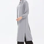Denna långa ribbstickade slipover är ett stilrent och mångsidigt plagg designat i standardstorlek för att passa alla kroppsformer. Tillverkad med omsorg i Turkiet, kombinerar den klassisk stickad struktur med modern komfort och funktionalitet.
