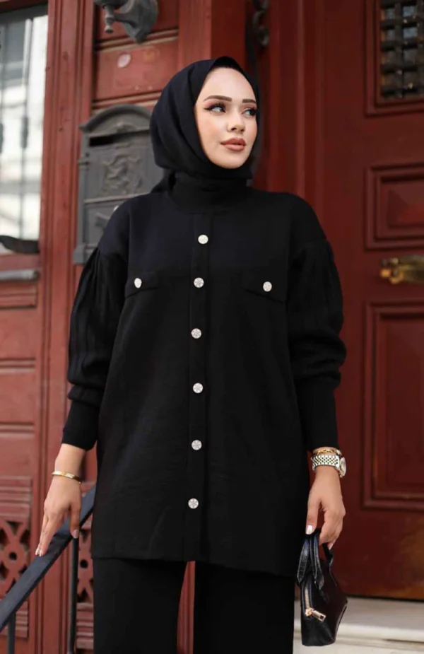 Upptäck vårt Stickade Set Med Vida Ärmar i Svart, den perfekta kombinationen av stil och komfort för höst, vinter och kyliga vårdagar. Setet är tillverkat i mjukt och elastiskt stickat material som ger både värme och rörelsefrihet. De vida ärmarna ger en avslappnad och trendig silhuett, medan den varma Svarta färgen gör det lätt att matcha med andra plagg. Perfekt för både vardag och fest, detta mångsidiga set passar alla tillfällen och håller dig stilfull och bekväm.
