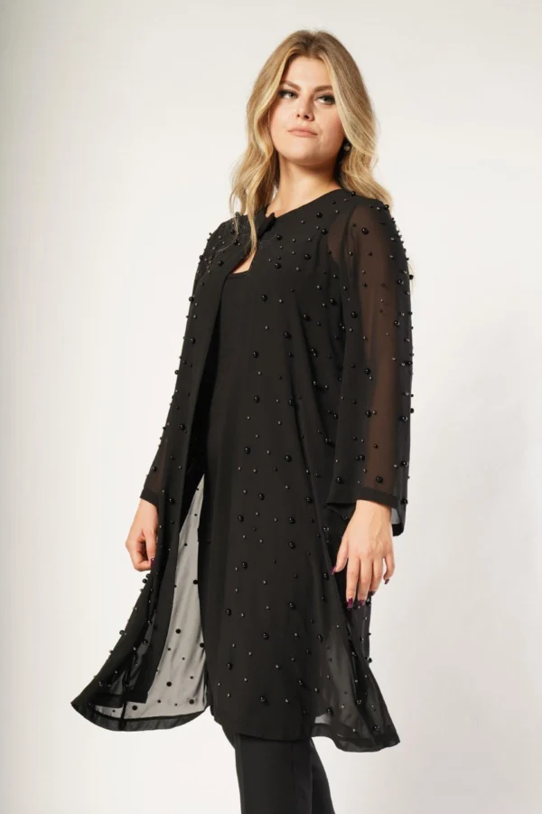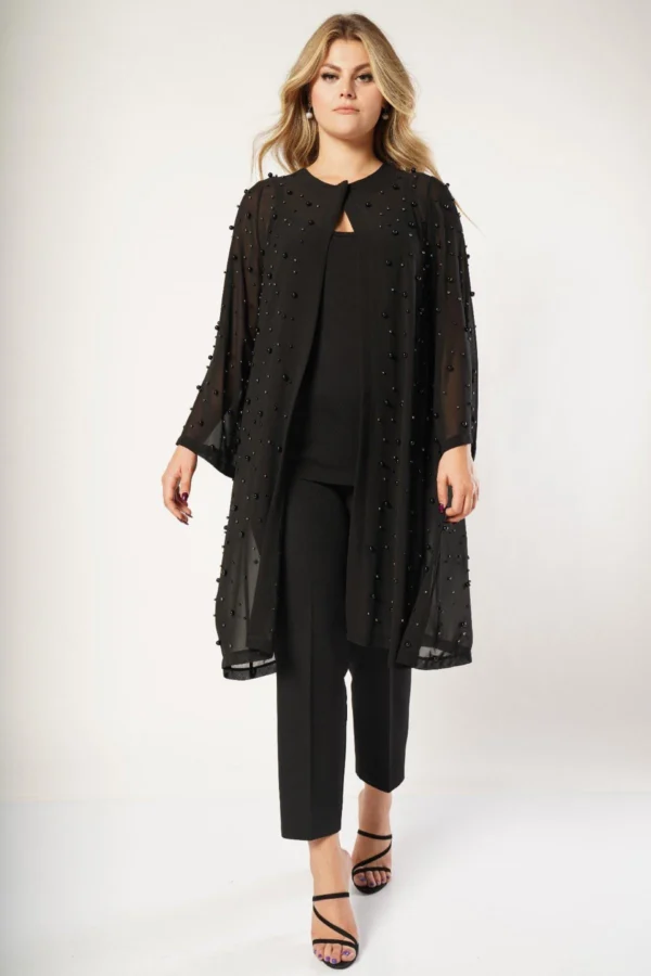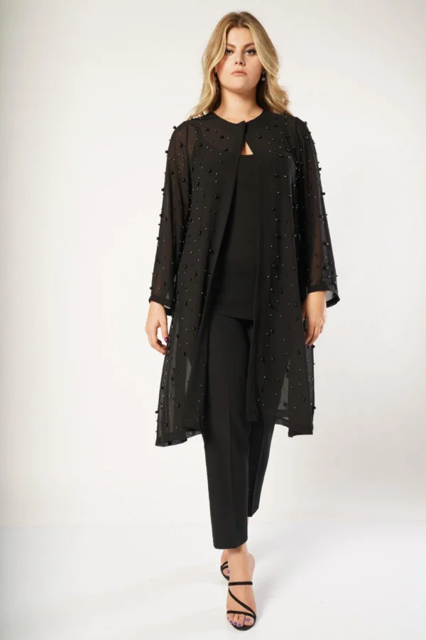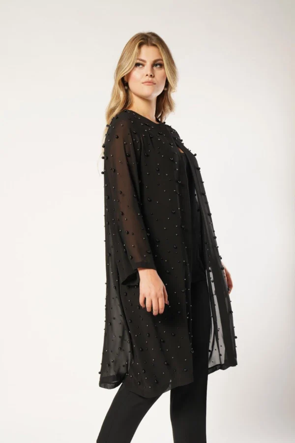 Plus-Sized Lång Chiffongjacka med Pärlor – Svart