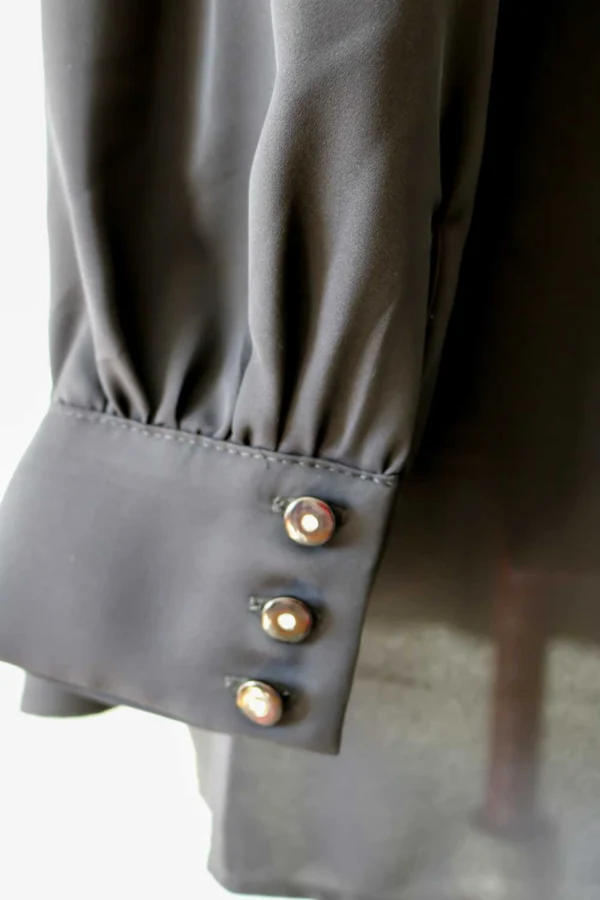 Upptäck vår nya Hållbara Knytblus i Regular Fit! Denna eleganta blus är utformad med knytband och knappar fram för en tidlös stil som passar alla tillfällen. Med en längd på 75cm och en regular fit