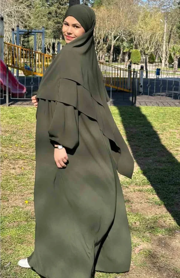 3 – Delars Medina Silk Abaya Set – Khimar Och Niqab – Olivgrön