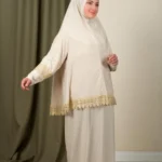 Setet består vanligtvis av en lång, flödande överdel och en bekväm kjol, båda designade för att ge maximal täckning och rörelsefrihet. Överdelen har ofta långa, vida ärmar och en generös längd som täcker kroppen väl. Kjolen är utformad med en bekväm resårmidja och en vid passform som elegant faller över benen. Båda delarna är tillverkade av högkvalitativ bomull, ett material som är känt för sin exceptionella mjukhet, andningsförmåga och hållbarhet. Bomullens naturliga egenskaper säkerställer att bönekläderna känns otroligt behagliga mot huden, vilket är viktigt för att bibehålla koncentrationen under bönen. Tyget är även utformat för att vara ogenomskinligt, vilket ger trygghet och sinnesro.