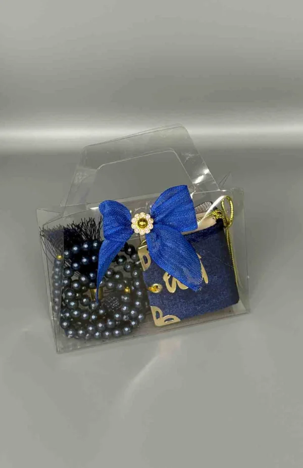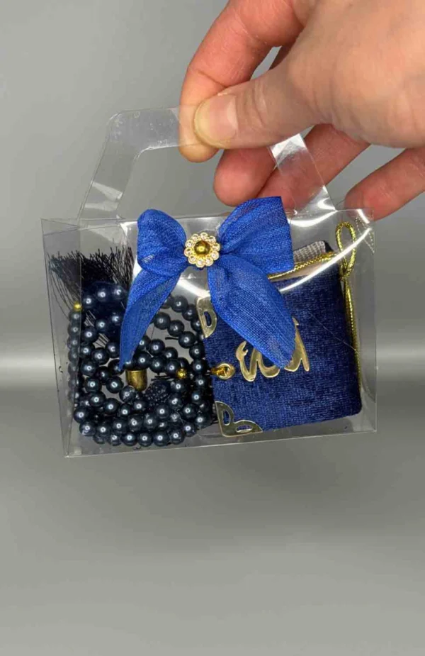 Den är en perfekt gåva för att fira den heliga månaden marinblå. Den inkluderar ett vackert radband (misbaha), samt en liten sammetbok. Perfekt som en ramadan gåva, bönbok, eller andaktsredskap, den är en meningsfull och vacker present för både familj och vänner. En lyxig Ramadanpresent med både funktion och symbolik.