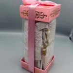 Den här exklusiva lyxiga Ramadan-presentlådan är den perfekta gåvan för att fira den heliga månaden Ramadan. Lådan är noggrant sammansatt för att ge en känsla av elegans och andakt, och innehåller tre utsökta föremål som alla är designade för att förbättra den spirituella upplevelsen under Ramadan.