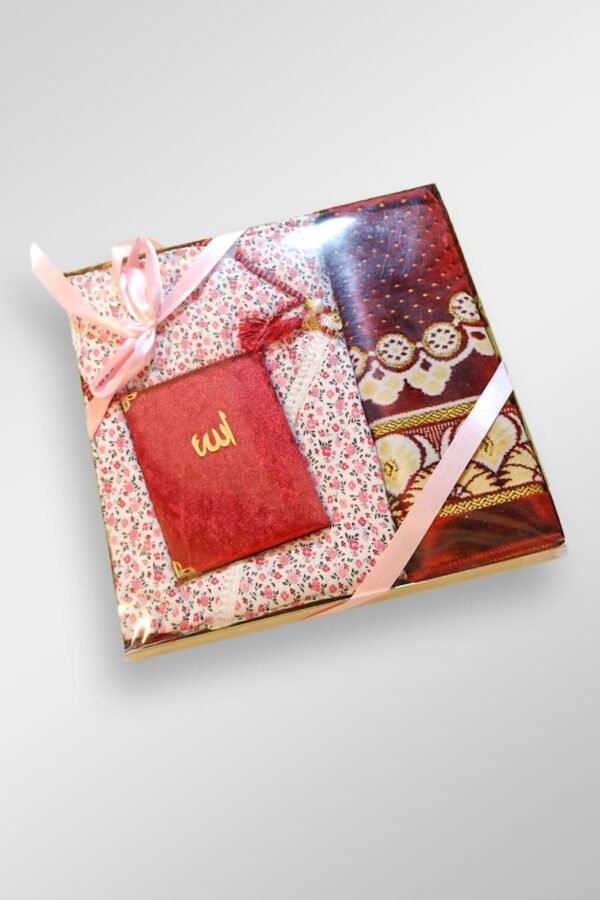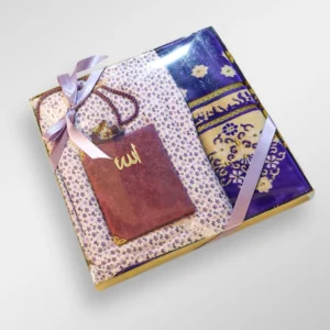Vår uppsättning islamiska gåvor innehåller allt du behöver. Setet innehåller en högkvalitativ bönematta, bönekläder, radband och Azkar bok.
