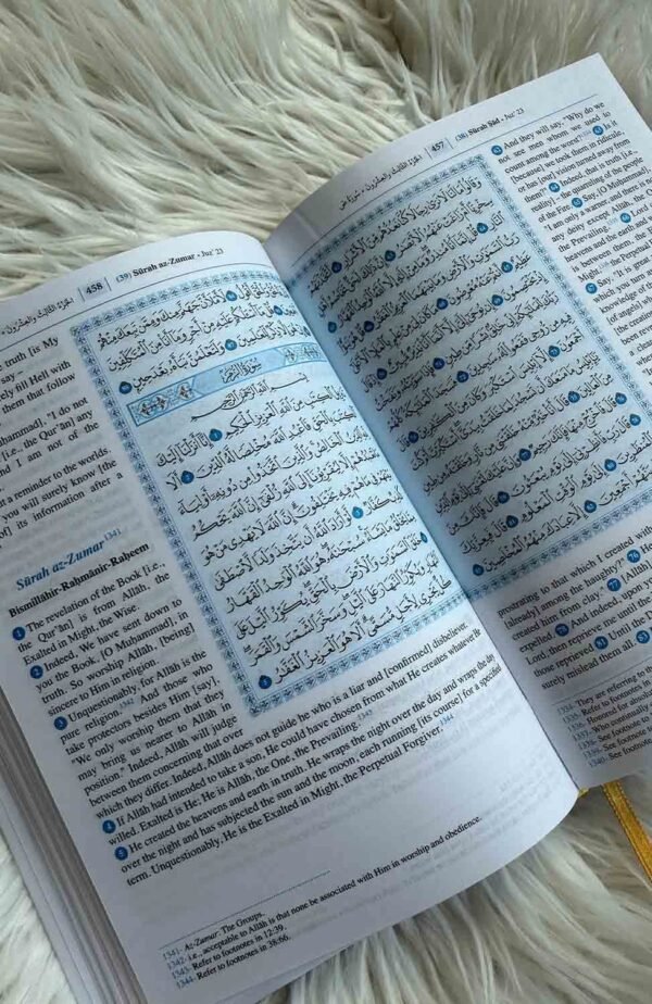 Denna vackert tryckta och högkvalitativa Koran på engelska kommer i en praktisk och lättanvänd mediumstorlek (20×14 cm), vilket gör den perfekt för både dagligt bruk och för att ta med sig på resor. Koranen är komplett och innehåller hela den heliga texten på engelska, vilket gör den till en oumbärlig resurs för troende som vill fördjupa sin förståelse av islams heliga skrift.