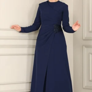 långärmad Festklänning - Marinblå