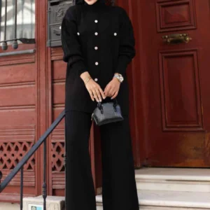 Stickat Set Med Vida ärmar - Svart