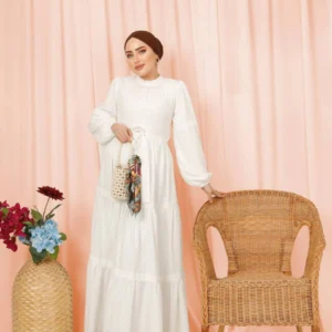 Långärmad klänning med knytskärp - Vit