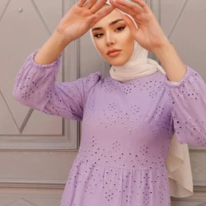 Långärmad Klänning Med Broderie Anglaise - Lila